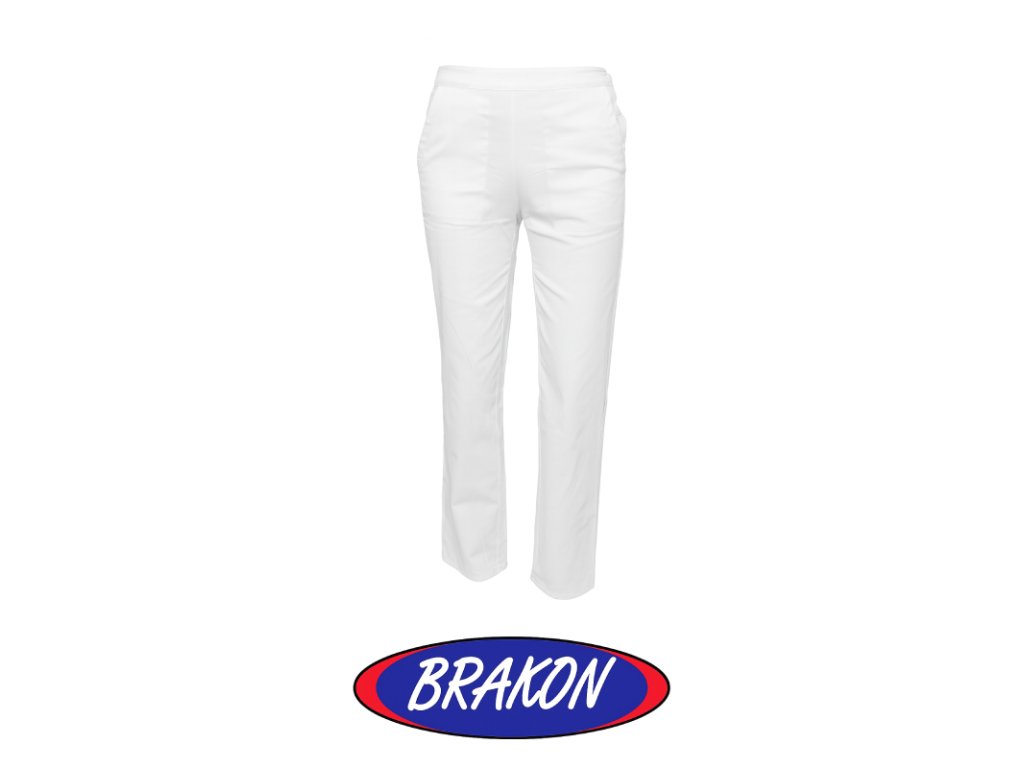 Biele nohavice dámske sú vhodné pre gastronómiu, zdravotníctvo a potravinársky priemysel. V páse je všitá guma so sťahujúcou šnúrkou. Vysoký pás zabezpečuje komfort pri nosení. Nohavice majú po bokoch hlboké vrecká. Sú vyrobené z kvalitného materiálu so 100% obsahom bavlny. Gramáž 200g/m2.