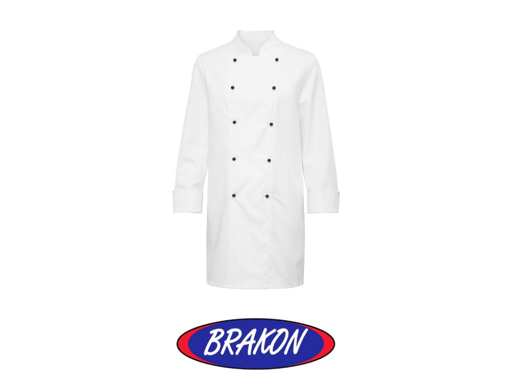 Biely kuchársky rondón je vhodný pre gastronómiu. Zapínanie je dvojradové. Rukávy sú zakončené manžetou, ktorej dĺžka sa dá ľahko upraviť. Súčasťou rondónu je 10 čiernych gombíkov. Je vyrobený z kvalitného materiálu so 100% obsahom bavlny. Gramáž 200g/m2. Pranie je možné na 90˚C, čo umožňuje jednoduchú údržbu.