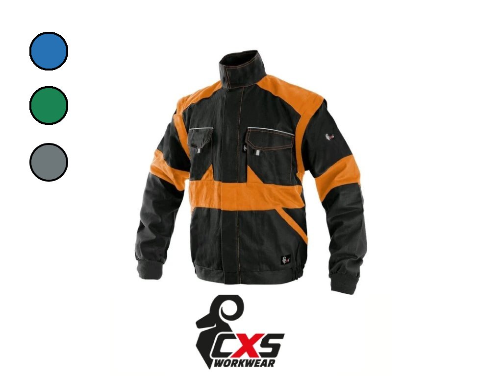 Pánska montérková blúza, odopínacie rukávy s pružnou manžetou, kryté zapínanie na zips a suché zipsy, náprsné vrecká s klopami, skryté náprsné vrecko na zips, jednoduché bočné vrecká, spodná časť na bokoch do gumy, reflexné doplnky.