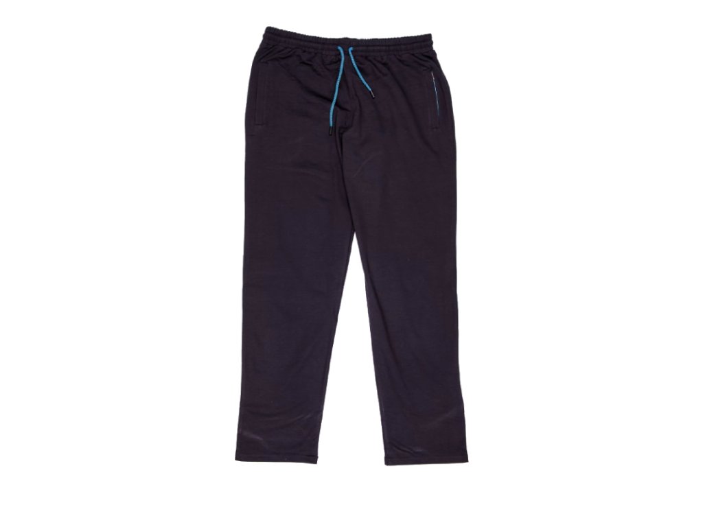 Pán tepláky čiernej farby. Na prednej pravej strane sú vrecká na zips a jemná potlač. V páse sú ukončené gumou a ozdobené šnúrkou. Zloženie materiálu 95% bavlna, 5% elastan