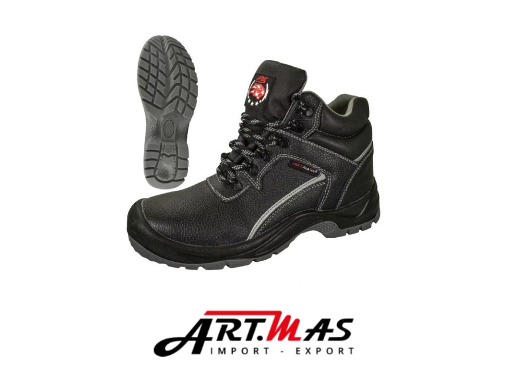 Pracovná obuv: bezpečnostná obuv s oceľovou špičkou a vložkou proti prepichnutiu. Vyrobené z lisovanej hovädzej kože.